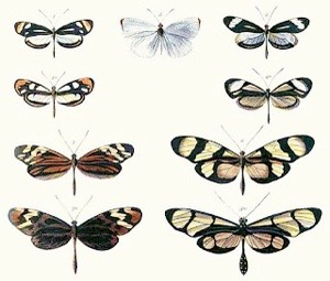 His work with the butterflies of the Amazon (he was primarily an entomologist) led to his description of mimicry (the first description of this concept) and especially what is now known as Batesian mimicry (a palatable species mimicking an unpalatable species). A plate from his 1862 paper, "Contributions to an insect fauna of the Amazon Valley - Heliconidae" is shown here.