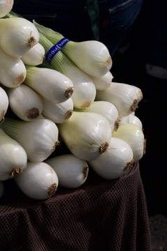 Onions are a cosmopolitan food which is prepared in numerous ways and is a tasty morsel in many regional receipes. The onions shown above are sometimes called “green onions” (although “green onions” often refers to plants harvested earlier).