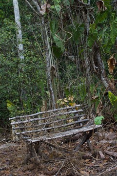 While at Cristalino we ventured down a side trail to a site called the “Secret Garden”. A open area in the jungle dominated by stone outcrops. It is a location which has been a traditional favorite because it gives good views into the jungle and pole benches have been built to accommodate the guests. We are early in the season, however, and the benches are still covered in vines from the off-season. The jungle encroaches everywhere when it is given a remote chance. Facilities often have to be cleared each year of vines and young trees. This location is relatively immune because of the bedrock but even here human-made structures are quickly engulfed.