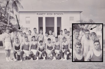 This was my freshman year of high school. I was on the varsity wrestling team - super light weights and finished second in the Puerto Rican wrestling tournament. Being on the wrestling team meant long hours of training, lots of conditioning runs - generally to Crash Boat Beach where the crash boats were stationed in case of a plane crash. It was a long run down the cliff to the beach, longer back up the road and to the high school. It was a bit surreal to be running up the road and suddenly see a B-52 take off, dropping below the cliff edge before it began to gain altitude, all of this within a hundred meters of where I was running. Crash Boat Beach was where we once had a “company picnic”, lots of free food, and a good dose of cactus spins for those running about in the sand without shoes. The finals of the state wrestling tournament were held at the base gym and it was a painful reminder of a psychological defect I have. I was wrestling this kid from Mayagüez, he was much stronger than I but I had more skill. I did not use that skill for fear of what would happen if I failed to get it right - so I failed, losing by a point. My lack of weight is apparent in the photo below.
